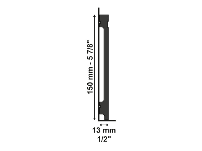 El zócalo B154 con masa oscura tiene 15 cm de altura y 13 mm de espesor, con acabado blanco, dorso con masa oscura y perfil frisado. Fabricado en poliestireno (EPS), este zócalo integra la Colección Bellitas Masa Oscura de Santa Luzia, manteniendo el mismo estándar técnico y de calidad de los productos de la marca.