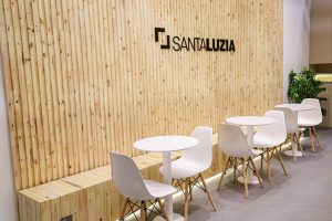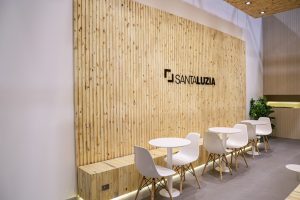 Com estande de 135m² assinado pela arquiteta Juliana Medeiros, a empresa reconta sua própria história em homenagem aos 80 anos, comemorados em 2022. Utilizando da expertise no desenvolvimento de soluções inovadoras e no manuseio de resíduos de poliestireno expandido (EPS, popularmente conhecido pela marca Isopor®), além da madeira plástica (WPC) e o pinus proveniente de reflorestamento, a Santa Luzia adiciona em seu portfólio novidades em revestimentos, boiseries, rodapés e painéis ripados.
