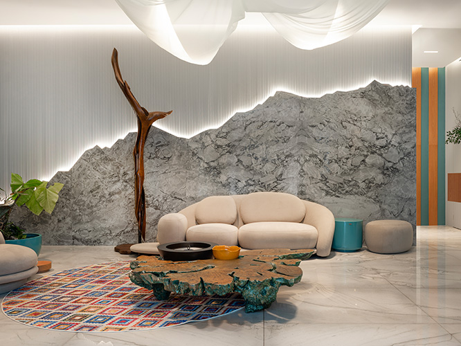 Inspirado nas formas da natureza, o Waves traz curvas suaves e efeito tridimensional, criando uma sensação de fluidez e modernidade nos ambientes.